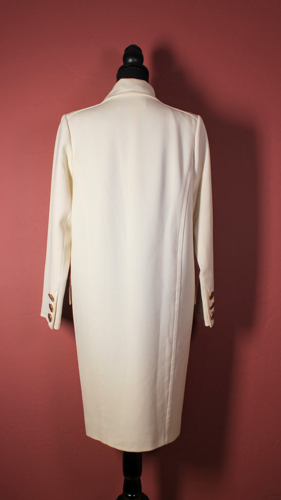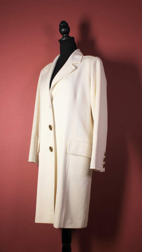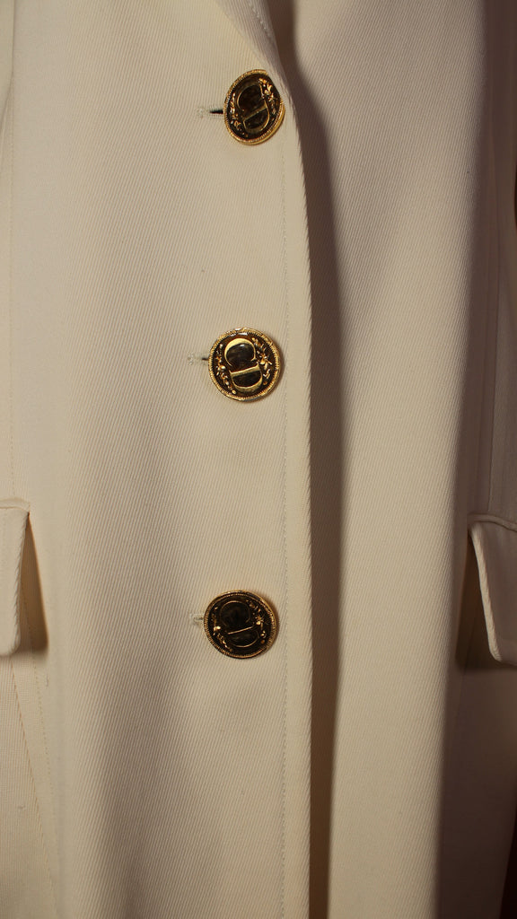This incredible original white Christian Dior Coat has the most beautiful buttons. In excellent condition. Comes with built-in shoulder pads.