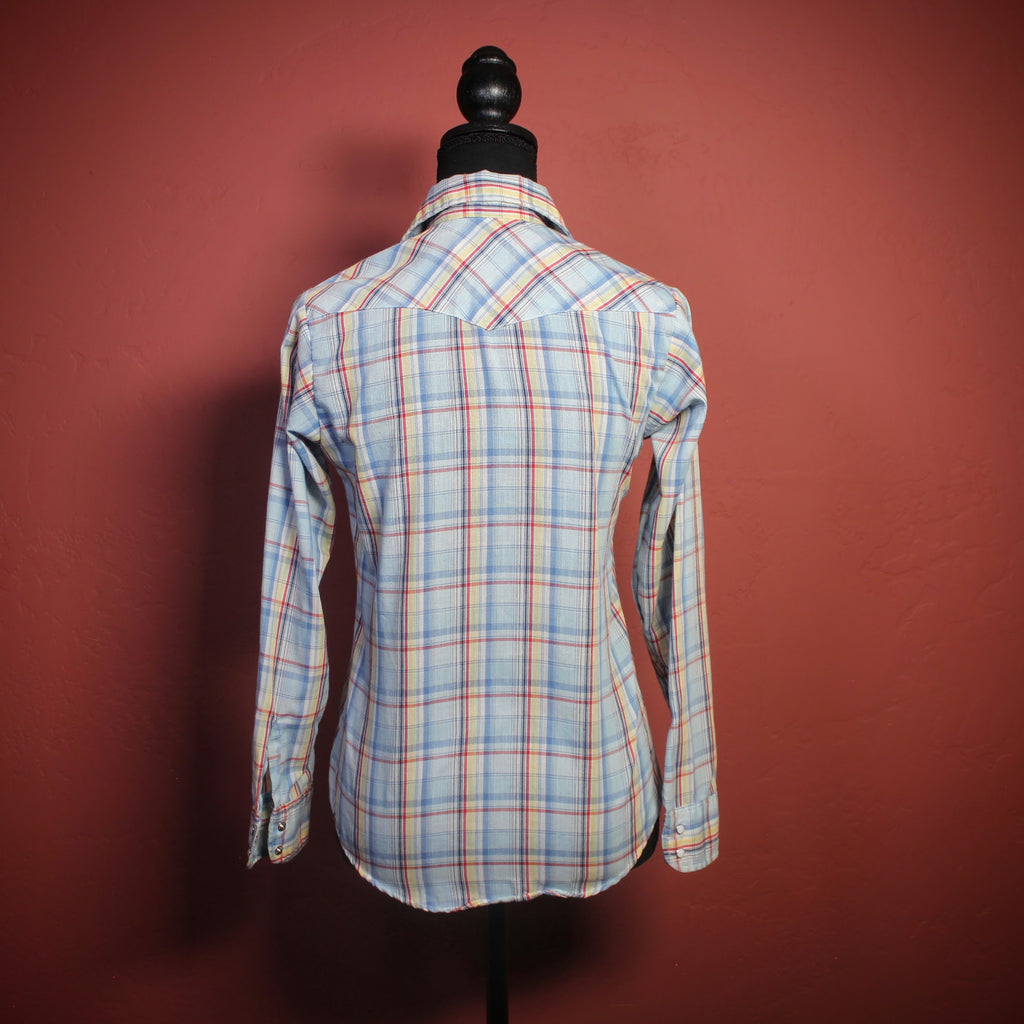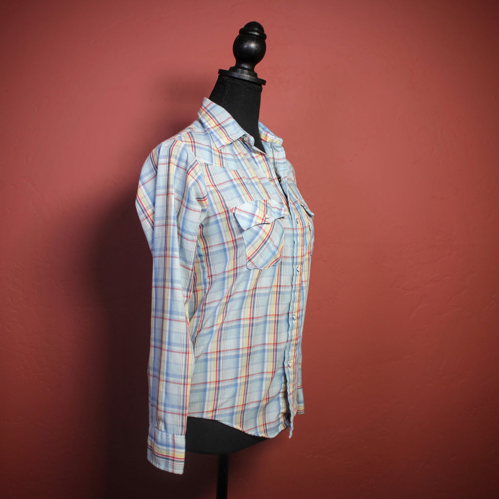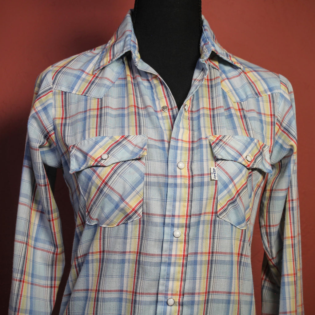 1970's Levi's Blue Plaid Pearl Snap Button Down Shirt