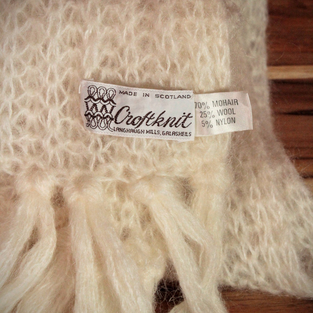 1960's Cream Scottish Mohair Blend Scarf