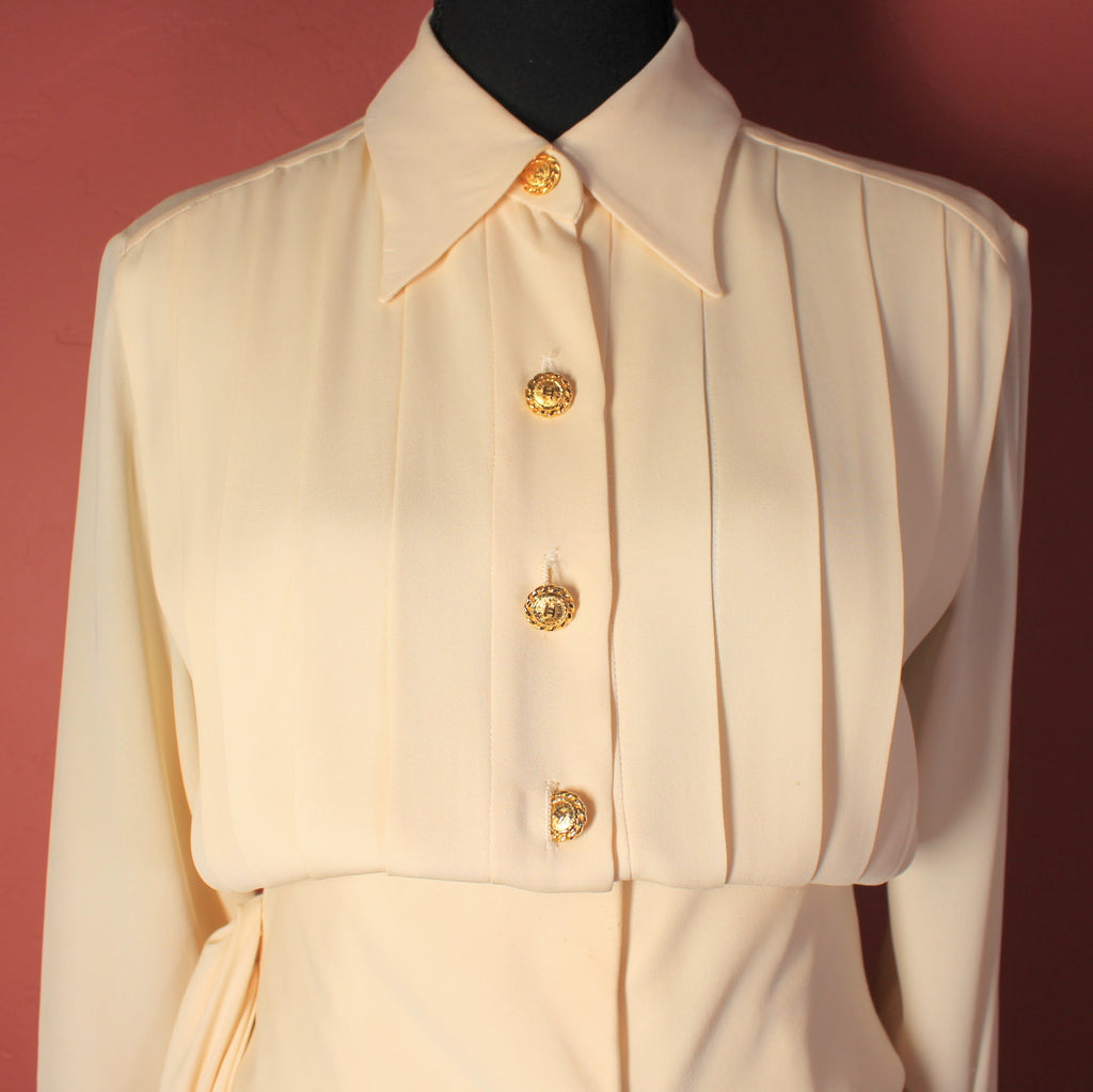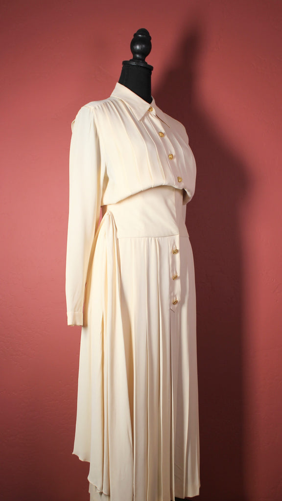 This stunning 1970's long, cream, silk Chanel dress is in excellent condition.